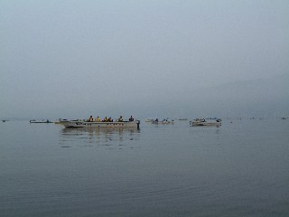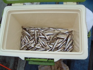 | 11月3日今日は秋葉原の仲間と諏訪湖にワカサギ釣りに行きました。 AM4:00国立インター突入(車だよ)5:30諏訪インター到着一路ワカサギセンターに行きました。出船は6:30なのでボートの受付等を済ませ仕掛けの準備をして出船待ちです。 6:30ちょうどに出船してハーバー沖までえっちら、こっちら船を漕いで約15分で到着。さあ釣るぞー! 二本竿で仕掛けは10本針の底針付きです。もー入れ食い状態で10:00頃まではタバコも吸えません。しかし、10:30頃になると食いも止まり一休憩し11:30にはボート小屋へ引き上げました。 釣果は200匹位でした。12:30には帰路に着きましたが、すぐに雨が降り始め中央道に乗った頃にはどしゃ降りになってきました。どしゃ降りの中自宅到着は3:00でした。やっぱり車でも雨が降るとペースが落ちますね。釣った魚は本当は自宅で食べたかったのですが都合により一緒に連れて行った子供にすべて、プレゼントしました。たまにはいっか! |