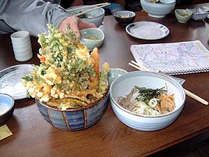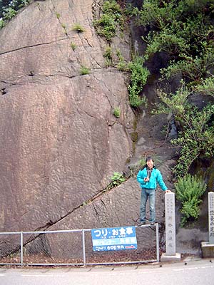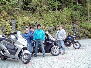 | いつものセブンイレブンに6:00集合ね〜! ズッキー君からメールが入った。 こめちゃんにもメールを送る。もちろんマピオン付きで。 しかし、来るともこないとも連絡がないのでチャットで聞いてみたところ どうやら、来てくれるらしい。(こめちゃん、ゲットだぜ!) 天気も回復傾向にあり絶好のツーリング日和となった。 朝4:00起床 一杯のコーヒーを飲みながら今日の天気予報を見ていた。 雨は降らないと言っている。 そりゃそうだ、俺がツーリングに行くんだもん。 ゆっくりと支度をして5:00出発しようとしていたら、会社の「あめる君」よりTELが入る。 ヘルメットをかぶった後なので、とりあえず「ちょっと、待ってて」と言ってメットを脱いだ。 「今日、ツーリング行くんですか?」 「何言ってんだよ、こんな時間にTELに出るって事は行くに決まってんじゃん!」 ところで、どこにいるの? うちの近所のセブンイレブンにいるらしい。 何だよ、早く来いよ。出発するぞ〜 てな具合で「おやじん家」を出発。 集合場所は箱根ヶ崎のセブンイレブン「あ、6000円しかない。ここでお金おろそっと!」 こんな時の為に「IYバンク」に口座を作っておいたのさ! ここで、ジェイドの「あめる君」と一緒にこめちゃんとズッキー君を待ちます。 そうそう、なんで「あめる君」と言うかというと、想像通り雨人なのです。 ホントの名前は「みのる」なんですが、一緒に出かけると雨が降ります。 でも、今日は大丈夫でしょう。 6:00には全員揃ってさあ、出発です。 今日の目的地は長野県姫木平にある「利休庵」。 ルートは箱根ヶ崎〜名栗渓谷〜秩父〜麦草峠〜白樺湖〜利休庵です。 途中にある「恐竜の足跡」です。これで、村興しをしてるみたいです。 行ってみると、なんて事ないとこなんですが、どこかの学者さんが 本物と証明したそうです。 この人がうわさの「あめる君」です。水飢饉の場所に行って上げて下さい。 絶対に「なかちゃん」と合わせたくない人、第一位です(笑) 後ろにあるのが恐竜の足跡です。 はっきり言ってよく分かりません。 でも、いい思い出になるかな? ![]() みんなで撮ったたった一枚の写真です。 恐竜の足跡駐車場で撮りました。 この後、快調にR299を長野方面に快走しました。 横浜からお越しの「あめる君」はガソリンが少なくなりガススタンドを 探しましたが、どこにもありません。 何件かあるんですが、まだ営業時間ではないみたいです。 そんなこんなで、十石峠とぶどう峠の分岐点まで来てしまいました。僕のガソリンは半分ですが「あめる君」は満タンから170km走ってる ので、ちょっと心配そうです。 十石かぶどうか迷いましたが、結局ぶどうを選択しました。 ところで、ぶどう峠って武道峠って書くの知ってました? どっかに書いてありました。 この、ぶどう峠は道は荒れているし砂は浮いているしでとっても走りづらい 道でした。 ![]() ぶどう峠の山頂です。 ![]() とっても、景色が良くこの時はあめる君の存在を忘れていました(笑) ぶどう峠を駆け下りて、最初のガソリンスタンドで全員満タンにしました。 これでもう、安心です。 後は、麦草峠突入です。 麦草峠は道路補修のコールタールかな〜? なにやら、黒い帯状の補修跡がありそれに乗るとズルッと、タイヤがスライド します。僕の前を行くズッキー君の後輪が10cmくらい滑りました。 でも、さすがズッキー君は足をついて立ち直りました。 こめちゃん、おやじん、ズッキー君は無線装着なんで「怖い、怖い」と 連発していました。 ![]() 白樺湖を抜けて、やってきました「利休庵」。 ![]() これがうわさの「天丼」です。 僕は天丼蕎麦付き¥1750を頂きました。 ここで、今日の目的は達成したのでこれからどうするか、次の目的地を決めます。 結局、来た道を途中まで戻り小淵沢ICから中央道に乗ることになりました。小淵沢ICで雨が降り始めましたが、たいしたことはないので本降りになったら次のPAで合羽を着ればいいや、っと言う事になりました。この時私は「あめる君」の存在をすっかり忘れていました。なぜなら中央道の本線に入った所で本降りとなりGパンはグショ濡れとなり土砂降りの中双葉SAまで走りました。双葉SAでは雨もすっかり本降りとなり全員合羽着用してまた、走り出します。ところが本線に入ると雨はすっかり止んでいて道路も乾いています。また、降ってくるだろうな〜って思ってたんですが、談合坂SAに着いても振ってきません。ズッキー君は勝沼で降りて柳沢峠で帰宅。でも「あめる君」は相模湖まで来るはずなのに談合坂SAには寄らなかったみたいです。そのまま相模湖ICで降りて横浜に帰りました。結局談合坂SAへは僕とこめちゃんだけでした。しかし、バイクがいっぱいの談合坂で休憩しているとどこかで見た顔が目の前を通り過ぎようとしています。「しんちゃんだ〜!」しんちゃんは今回の朝6:00集合の早朝に負けて一人で関越〜雁坂〜中央というお気軽ツーリングをしていたらしい。 また、一緒