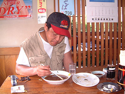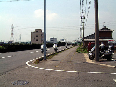 ちょっと、時間が余ってしまうのでここからはまったりペースで走ります。 ちょくちょく休憩を取りながら小牧ジャンクションに突入すると 反対車線は事故渋滞していました。 名古屋からは東名阪に入ります。 トンネルを過ぎたあたりでこちらも渋滞が始まりました。 あれ?こんなとこ普段は渋滞しないんだけどな〜? っと考えながらすり抜けてていると車3台の事故でした。 あ〜あ、かわいそ!事故渋滞を抜けた後は快調に名古屋の高速を 駆け抜けます。 ふとメーターを見るとガソリンがありません。 最後のワンドットが点滅しています。 何回見ても精神衛生上良くないですね! 蟹江IC9:15頃降りてガス補給です。 ガス補給の後目的地の「たてまつ」に行ったら やっぱり誰もいませんでした。 やったぜ!今回は一番乗りだ。