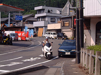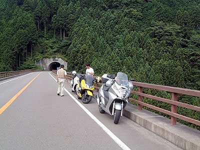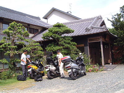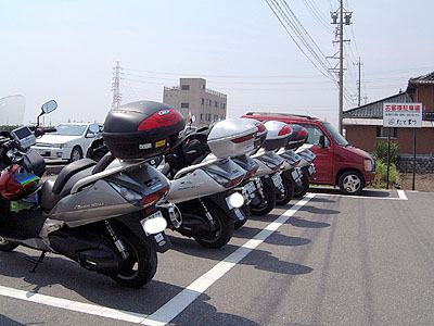 しばし、歓談の後は淡白に解散となります。 さあ、この後はどうしよう? ダーさんとおなかさんは飛騨路へ行きました。 名古屋チームと走ろうかとも思いましたが 名古屋チームの棟梁がお仕事のため不参加なので twocimaさんにどーするの? 「おやじんについていく」 なんのこっちゃ! 本当は日帰りしようと思ったのだが 山伏峠に行くといったらなかちゃんが「僕も行く〜」 って言うんで、三ケ日に泊まって早朝のR362&南アルプス公園線走破に決めました。 なかちゃんとは7:00三ケ日IC待ち合わせです。 twocimaさんと一緒にTMAXの山田さんも一緒に来てくれました。 「おやじん」「twocimaさん」「山田さん」の三人で三ケ日に向いました。 「どっかで民宿探しますか?」 「前に私が泊まった民宿に行ってみよ〜!」