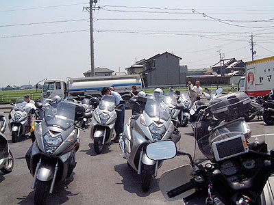 着くなり。何人かがこの先のサークルKに到着しているとのこと。 残念、今回も一番乗りできませんでした。 でも、9:30前には到着したのにな〜。 それからぞくぞくとご到着です。