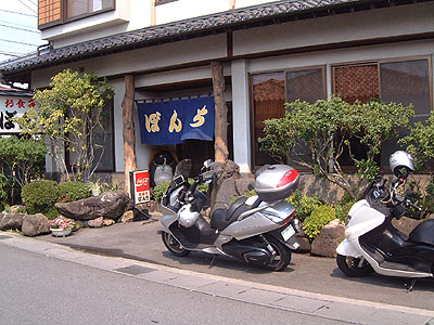 結局、何処に行っても通行止めでR362に引き返しました。 しょうがないので清水ICまでバイパスを走り清水IC〜富士ICまで高速でワープして 富士ICからR139を北上し本栖湖、精進湖を抜けR358で中道町経由で甲府に抜けます。 そう、目指すは「ぼんち食堂」です。 富士ICの時点でナビを見ると、ぼんち到着15:30です。 たしかぼんちはお昼は14:00までなので急がなきゃ! R139はとっても走りやすく周りの四輪も60キロ〜80キロで流れています。 到着予定時刻がどんどん早くなっていきます。 そんなんでぼんち到着13:24でした。