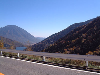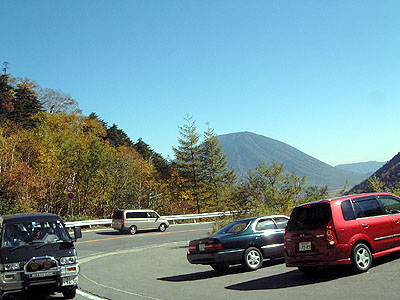 出掛けに、「気にしないで先に行ってください」 優しいお言葉に感謝して、渋滞をすり抜けていきます。 何処まで続くんだろう? 途中、マジェとスカイウェーブが前をすり抜けています。 おっと、NRだ〜! 渋滞は吹割の滝まで続いていました。 しばらくして停車して掲示板に書き込んでいると 詠み人知らずさんが到着しました。 「それでは、大笹牧場に行きますから」 そこからもばらばらで大笹牧場に向います。 丸沼・菅沼を過ぎて金精峠に入ると周りは紅葉に色づき あたりには写真を撮っている車で溢れ返っています。