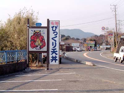 どこか適当なところで食事をしようと言うことでそのまま海岸線を南下します 交通量の少ないR134を3台のスクーターが爆走しています。 あれ???そういえば今日はカシノキさんの慣らしだよな〜。 でも、カシノキさんも空波のコーナーを楽しんでいます。 そこで私のナビに出てきた「浜田屋」さんに到着です。 前から気になっていた「ビックリ天丼」です。