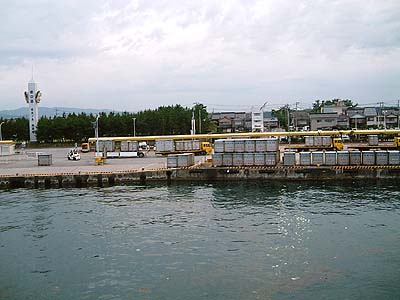 | 地図を見れば分かりますが両津から海岸線を北上して そのまま走って小木港まで来るとほとんど佐渡一周です。 このまま両津港まで行くと何時頃になるだろうと思い 走り始めました。 両津港到着17:00。 宿泊地を探すのも面倒だからこのまま帰っちゃおう! と、言うことで18:40発のフェリーに乗り込みました。 12:00に佐渡島に到着して5時間で 佐渡島一周出来ました。 今回は天気が悪かったので、もう帰ることにしました。 佐渡島よさようなら。 たぶん、もう来ないでしょう。 |