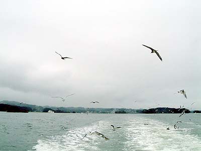 | もちろん遊覧船に乗りました。 また、かもめに「かっぱえびせん」をたくさんあげました。 | |