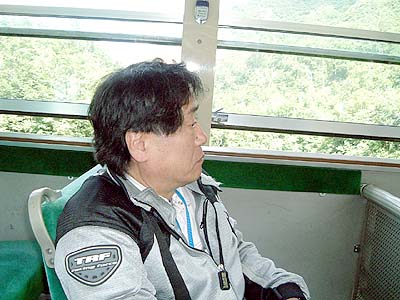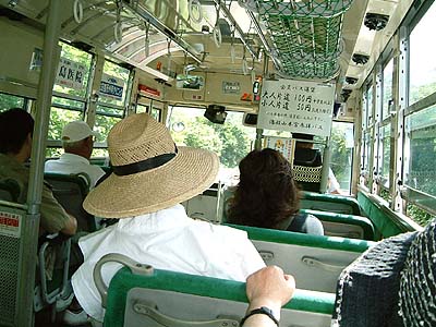 | 山頂にある拝観所にはバスに乗っていきます。 片道100円、往復200円。 なんでこんなとこまで来てバスに乗るかな〜? |