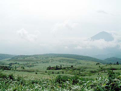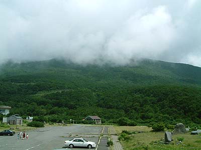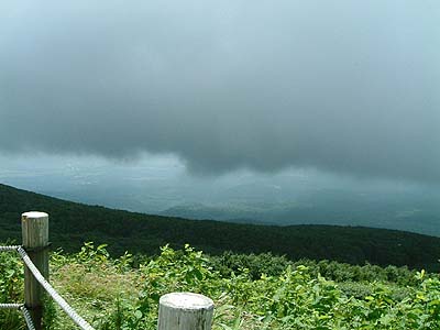 | 鳥海山の中腹から本当なら日本海が 一望できるのですがここだけ雲があり 今日は絶景が見込めませんでした。 一応海側を撮って見ました。 | |