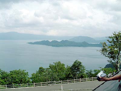 | 八幡平を抜け十和田湖に到着しました。 十和田湖が一望できる休憩所で一休みです。 | |