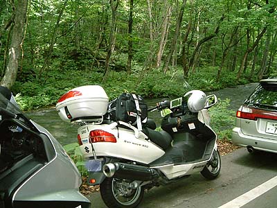 | 奥入瀬渓流を後にしてR103の十和田ゴールドラインで 青森を目指します。 八甲田山の脇を抜けていくのですがこれまた良い道でした。 ナビの言うとおり走っていると牧場の中を抜けて行く道を 走りました。 ナビは一般道の最短距離で設定してあるので普通のバイクが 走らないところを走っていきます。 これがなかなか楽しいんだな。 |