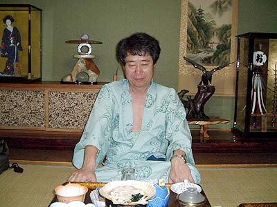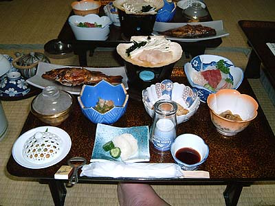| とあるひとの紹介で泊めていただいた「おおぎや」さんです。 本日お休みのところ特別に宿泊させて頂きました。 私とまなさんの他は、老夫婦が泊まっていただけでした。 大変なご馳走と素晴らしいお風呂を有難うございました。 紫男爵と福田さんには御礼申し上げます。 |