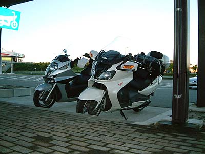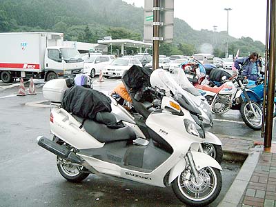 | 8月12日雨の中を午前5時に出発して東北道蓮田PA に寄りました。バイクがたくさんいました。 みんなツーリングに行くんですね。 僕も行くんだ! | |