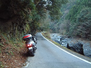 | 2001年ラストランをどこに行くかいろいろ考えた。 とにかく1度も足を踏み入れた事のない場所へ行くことにした。 岡山行ってうどんを食って香川に行ってうどんを食う。うどんツアーにしようと思っていたがこめちゃんより和歌山の美味しい処の案内に負け、こめちゃんに和歌山に連れていってもらう事にした。和歌山県も候補地に有った為結構嬉しかった。 ここの所ずっとこめちゃんと一緒に毎週走っていたが、いつも誘っていると嫌がれると思い、今回はソロで行こうと思っていたがどーやらこめちゃんが、つれていってくれるみたいなので、今週もKSC復活であった。 12月8日 AM6:00 東名高速下り線 海老名SA集合 まだ、外は真っ暗である。5:50頃海老名SA到着。なんとこめちゃんがいるではないか!「今回は140km以上は出さないよ!」って、訳わかんない事言ってる。一応「了解」と言っておいたが、140kmで我慢できるわけないと心の中でつぶやく「おやじ」であった。高速ではガソリン補給かトイレ休憩のみで疲れたから休憩は無し。 名古屋に入る頃ヘルメットから「カチャカチャ」とかなりうるさい音がし始めた。名古屋ICで確認するとシールドの右側のネジが無くなっている。その為にシールドの台座から音がしていた。こめちゃんに言うと「じゃあ、名古屋でパーツショップに行こう」と言ってくれた。「こめちゃんありがとう」冷たい奴なら「じゃあ、先行くね!」って奴もいそうだ。名古屋のどっかのICで降りてこめちゃんが携帯でパーツショップを探してくれた。検索で三件ヒット。そこへ向かい途中バイク屋で聞いたがパーツは扱っておらずこめちゃんが探してくれた「しゃぼんだま」と言うショップなら有るとのこと。2台の銀翼はシャボンダマに向けて名古屋市内を駆け巡る。途中、無線で「ツーリングで名古屋市内は絶対走らないね!」そりゃそうだ!こめちゃんに感謝しております。走ること20分「そろそろこの辺だよ」と、こめちゃんからの無線ガソリンを入れようとなりスタンドのにいちゃんに聞くと「すぐそこ」とのことでスタンドから50mの所に「しゃぼんだま」発見。ねじ4個で¥200なり。ついでにすべてのネジを確認したら、すべてのネジがゆるゆる、「おやじ」の頭と一緒であった(笑)。ネジを締 めた後はまた、名神高速に乗り突っ走る。養老SAではトイレのあと「たこ棒」なるものを食す。要するにさつま揚げが棒状になっており中にタコがはいっているもので結構うまかった。おみやげで買えば良かったと思っている。 大津SA12:00昼食をとりこれからの進路を検討する。名古屋で時間をくってしまったので和歌山は無理か?そんなら京都を走ってみるか?でも時間が余ってしまう。やっぱり和歌山、龍神温泉だ〜!と言う訳でまた、走り出す。こめちゃんは「また、高速かよ〜」って言ってた。私は高速は嫌いじゃないのでちょっと嬉しい。 名神から近畿道に入りどこで降りたか分らないが下道に下りた。途中大渋滞、無線でこめちゃんにぼやく「高速で和歌山行ったほうが早いんじゃない」「すっと渋滞だったら嫌だね」でも、大人のこめちゃんは笑いながら渋滞の中をすり抜けていく。 高野山に入る頃渋滞も無くなり道は細いが我々の大好きな「うねうね道」。今までの渋滞も忘れて飛ばしまくり。そして「龍神スカイライン」へ入り口には「二輪車通行止め」こめちゃんが先に行って交渉の結果通行OKとなる。この「龍神スカイライン」は前にも後ろにも車がいない対向車も来ない起伏も少なく高速コーナー有り、低速コーナー有りのライダーにとってこれほど素晴らしい道路はあんまり無い。まあ、時間もこの時期の16:00位だったからだろう。とにかく楽しい道でした。スカイラインを抜けるともうすぐ龍神温泉に到着、GSでガス補給の後民宿やら旅館を散策し、ある旅館で値段を聞くと\15.000前後とのこと、ちょっと高い、当然値段の安い民宿で決定 素泊まり¥5.000也。近くの食堂で夕飯を取りかえりに日本酒と焼酎を買って宿に帰りまた一杯飲んでから爆睡!やっぱりこめちゃんは寝れなかったらしい。ごめん! 12月9日 AM7:00 龍神温泉出発 ![]() 今日はさかなさんの「ちょこっと集合4回目」に顔出す為木津川の笠置に向かう。昨日走った龍神スカイラインを今日は明るいので「全開」暗くても「全開」ですが、やはり明るいと気持ちが良いですね。久々の90%です。100%の戦闘モードはズッキーやえびちゃんとだけです。だってこんな所で転倒したら大変だから! 高野山を抜けR371〜R369へ、パトカーと一回スライドしましたが、車も少なくここもいい道でした。そして皆さんのいる笠置に到着 11:10頃でした。タンスキさんの駆動系改造銀翼には乗れませんでしたがみなさんと鍋を囲って楽しい一時を味わう事が出来ました。しかし我々は関東人、しかも明日は5:00起きです。 12:45分 笠置出発 京奈和道路の山田川ICに向けてR163を西へ走ります。「何で俺達帰るのに西に行くんだろう?」と無線で話し合っていました。な