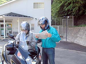 | いつものセブンイレブンに6:00集合ね〜! ズッキー君からメールが入った。 こめちゃんにもメールを送る。もちろんマピオン付きで。 しかし、来るともこないとも連絡がないのでチャットで聞いてみたところ どうやら、来てくれるらしい。(こめちゃん、ゲットだぜ!) 天気も回復傾向にあり絶好のツーリング日和となった。 朝4:00起床 一杯のコーヒーを飲みながら今日の天気予報を見ていた。 雨は降らないと言っている。 そりゃそうだ、俺がツーリングに行くんだもん。 ゆっくりと支度をして5:00出発しようとしていたら、会社の「あめる君」よりTELが入る。 ヘルメットをかぶった後なので、とりあえず「ちょっと、待ってて」と言ってメットを脱いだ。 「今日、ツーリング行くんですか?」 「何言ってんだよ、こんな時間にTELに出るって事は行くに決まってんじゃん!」 ところで、どこにいるの? うちの近所のセブンイレブンにいるらしい。 何だよ、早く来いよ。出発するぞ〜 てな具合で「おやじん家」を出発。 集合場所は箱根ヶ崎のセブンイレブン「あ、6000円しかない。ここでお金おろそっと!」 こんな時の為に「IYバンク」に口座を作っておいたのさ! ここで、ジェイドの「あめる君」と一緒にこめちゃんとズッキー君を待ちます。 そうそう、なんで「あめる君」と言うかというと、想像通り雨人なのです。 ホントの名前は「みのる」なんですが、一緒に出かけると雨が降ります。 でも、今日は大丈夫でしょう。 6:00には全員揃ってさあ、出発です。 今日の目的地は長野県姫木平にある「利休庵」。 ルートは箱根ヶ崎〜名栗渓谷〜秩父〜麦草峠〜白樺湖〜利休庵です。 途中にある「恐竜の足跡」です。これで、村興しをしてるみたいです。 行ってみると、なんて事ないとこなんですが、どこかの学者さんが 本物と証明したそうです。 この人がうわさの「あめる君」です。水飢饉の場所に行って上げて下さい。 絶対に「なかちゃん」と合わせたくない人、第一位です(笑) 後ろにあるのが恐竜の足跡です。 はっきり言ってよく分かりません。 でも、いい思い出になるかな? ![]() みんなで撮ったたった一枚の写真です。 恐竜の足跡駐車場で撮りました。 この後、快調にR299を長野方面に快走しました。 横浜からお越しの「あめる君」はガソリンが少なくなりガススタンドを 探しましたが、どこにもありません。 何件かあるんですが、まだ営業時間ではないみたいです。 そんなこんなで、十石峠とぶどう峠の分岐点まで来てしまいました。僕のガソリンは半分ですが「あめる君」は満タンから170km走ってる ので、ちょっと心配そうです。 十石かぶどうか迷いましたが、結局ぶどうを選択しました。 ところで、ぶどう峠って武道峠って書くの知ってました? どっかに書いてありました。 この、ぶどう峠は道は荒れているし砂は浮いているしでとっても走りづらい 道でした。 ![]() ぶどう峠の山頂です。 ![]() とっても、景色が良くこの時はあめる君の存在を忘れていました(笑) ぶどう峠を駆け下りて、最初のガソリンスタンドで全員満タンにしました。 これでもう、安心です。 後は、麦草峠突入です。 麦草峠は道路補修のコールタールかな〜? なにやら、黒い帯状の補修跡がありそれに乗るとズルッと、タイヤがスライド します。僕の前を行くズッキー君の後輪が10cmくらい滑りました。 でも、さすがズッキー君は足をついて立ち直りました。 こめちゃん、おやじん、ズッキー君は無線装着なんで「怖い、怖い」と 連発していました。 ![]() 白樺湖を抜けて、やってきました「利休庵」。 ![]() これがうわさの「天丼」です。 僕は天丼蕎麦付き¥1750を頂きました。 ここで、今日の目的は達成したのでこれからどうするか、次の目的地を決めます。 結局、来た道を途中まで戻り小淵沢ICから中央道に乗ることになりました。小淵沢ICで雨が降り始めましたが、たいしたことはないので本降りになったら次のPAで合羽を着ればいいや、っと言う事になりました。この時私は「あめる君」の存在をすっかり忘れていました。なぜなら中央道の本線に入った所で本降りとなりGパンはグショ濡れとなり土砂降りの中双葉SAまで走りました。双葉SAでは雨もすっかり本降りとなり全員合羽着用してまた、走り出します。ところが本線に入ると雨はすっかり止んでいて道路も乾いています。また、降ってくるだろうな〜って思ってたんですが、談合坂SAに着いても振ってきません。ズッキー君は勝沼で降りて柳沢峠で帰宅。でも「あめる君」は相模湖まで来るはずなのに談合坂SAには寄らなかったみたいです。そのまま相模湖ICで降りて横浜に帰りました。結局談合坂SAへは僕とこめちゃんだけでした。しかし、バイクがいっぱいの談合坂で休憩しているとどこかで見た顔が目の前を通り過ぎようとしています。「しんちゃんだ〜!」しんちゃんは今回の朝6:00集合の早朝に負けて一人で関越〜雁坂〜中央というお気軽ツーリングをしていたらしい。 また、一緒