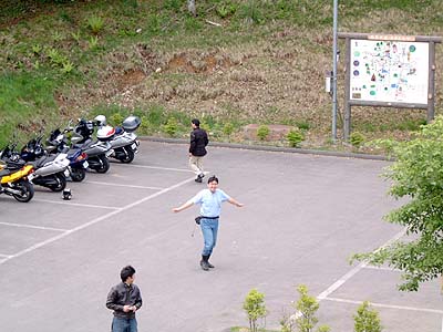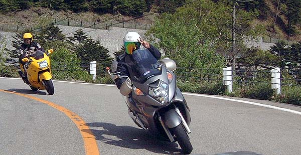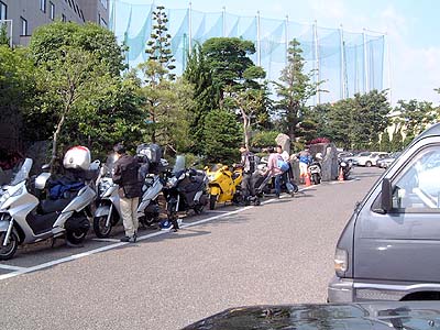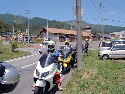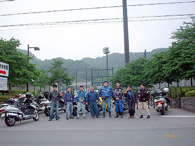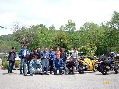 | 5月31日(金)17:30 会社のあめる君と明日の打ち合わせをする。明日は待ちに待ったダーさんツーリングである。銀翼に乗り始めた頃からダーさんのHPをチェックしており、ダーさんのHPで知った駒ヶ根の「ガロ」、姫木平の「利休庵」、戸隠の「岩戸屋」その他もろもろのツーリングコースといつもは大変お世話になっております。 いつか、ダーさん企画のツーリングに参加したいと思っていたところ、やっとお誘いの話がありもちろん参加させて頂きました。ズッキー君とは箱根ヶ崎のセブンイレブンに4:30待ち合わせ。「じゃあ、八王子ICに4:00ね!」っと言うことであめる君と約束して会社を出ます。 6月1日(土) 3:00起床、朝のコーヒーを飲んで3:30出発、3:50八王子IC到着。やっぱり、あめる君は来ていません。まあ、いつもの事なので一応4:00まで待つことにしましたが、4:00になってもやっぱり来ないので先に行くことにしました。八王子ICからR16を北上し横田基地のゲート前にさしかかる頃あめる君からTELが入りました。まだ、八王子市内にいるらしい。次の集合場所である箱根ヶ崎のセブンイレブンはあめる君には分からないので16号線を走って箱根ヶ崎を過ぎたらTELするように告げ私は第二待ち合わせ場所に向かいます。箱根ヶ崎のセブンイレブンに到着するとズッキー君はお店の中で買い物をしていました。4:30セブンイレブン出発途中のGSでガソリンを入れているとそこにあめる君が登場しました。少し遅れましたがやっと合流しました。 ふと、時計を見ると8:44です。早速出発しました。あと16分で着くのかな〜?そんな心配は無用でした。5分前には飯能のムーミン谷到着。 すでに、なかなかさん、ダイユウさん、こめちゃん、ケイさんがいました。少し遅れて本日の主催者ダーさん到着です。30分遅れでたけくんも到着しました。