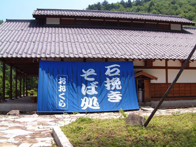 | 白樺林で写真を撮りトンネル出口の「石挽きそば処おおくら」で昼食です。 |