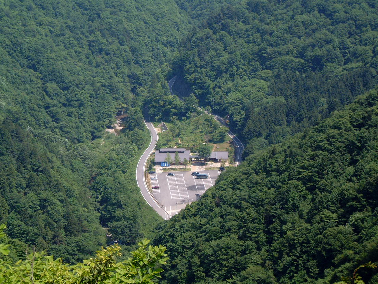 | その後は展望台へ行きます。蕎麦屋さんがちっちゃく見えます。 |