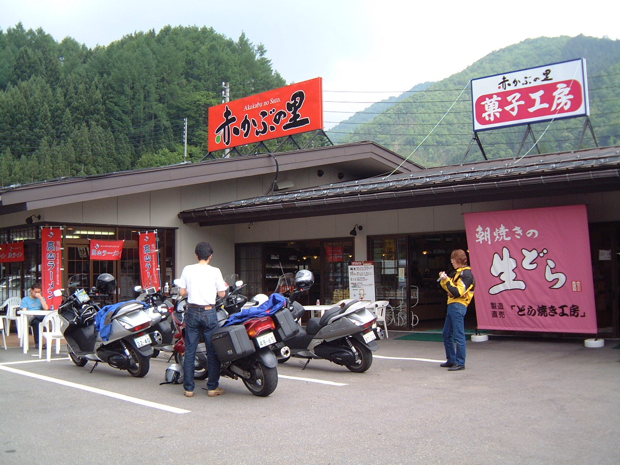 | それから、R158から安房峠へ、途中「赤かぶの里」で飛騨牛串焼きを食して |