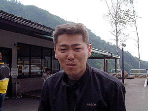 | 皮の上下に身と包みこれぞライダーって感じのカッコイイ人です。 |