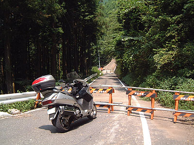 本当は南アルプス公園線から井川雨畑林道に行く予定でしたが 今回は山伏峠はあきらめて笠張峠から三ッ峰落合線を県道27号線に出て 県道29号線梅ヶ島街道を北上予定でしたがごらん通り通行止めでした。