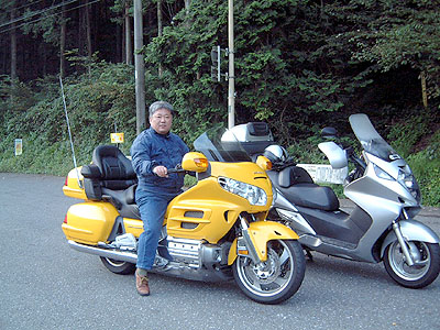 | 10月13日AM5:30 箱根ヶ崎のセブンイレブン やっぱり誰も来ません(悲) そんなら一人でカットビツーリングだ〜! 青梅街道でガソリンを補給して青梅市内から成木街道で爆走です。 時間も早いせいか車もバイクもほとんど見かけません。 しばらく行くと前方に金翼発見。 楽しそうだからしばらく着いていこっと! この金翼はそこらのおっさん金翼と違って結構なペースで走っています。 「へ〜!金翼も乗る人が乗ると結構早いじゃん。」 信号で止まると金翼人が振り返り「秩父ってこっちから行けますか?」 私は名栗経由で秩父に行きますから一緒に行きましょう! お〜〜〜、金翼と銀翼のランデブーだ〜! 正丸トンネル手前で一時止まりちょこっと歓談。