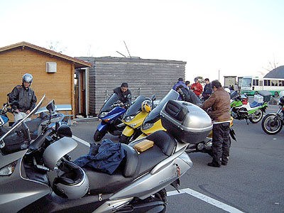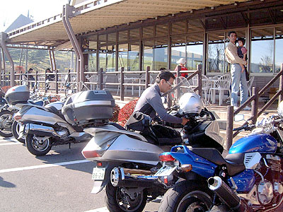 に向けて走りますが、紅葉のせいか車が大盛りで思うように走れません。 去年こめちゃんと来た時は楽しかったのにな〜。 あんまり楽しくないウネウネ道をひたすら走り やっと着きました「大笹牧場」 すごい人です。 バイクも沢山いました。 しばらくすると銀翼到着。 当然「詠み人知らずさん」かと思い手を振ると な、な、なんと福島の「ケイさん」でした。 掲示板をチェックしてくれていたのでみんながここに集まるのを 知っていたみたいでした。(Dr.Cobaさん有難う!) その後から詠み人知らずさん、一撃離脱さん(笑)ご一行様が到着