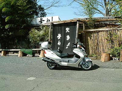 | 今日は「こめちゃん」がタンデムで奥多摩蕎麦を食すらしいので 夫婦水入らずのところに襲撃することにした。 11:00到着予定だが私は9:40の到着してしまった。 自宅から40分しかかからなかった。 結構近い! 近すぎる! これから1時間20分何してりゃいいんだ〜〜〜! | |