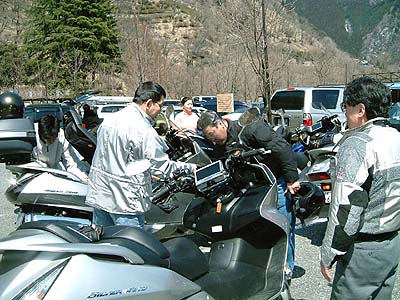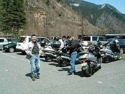 | 奥多摩湖の駐車場に6台のスクーターが集まりました。 でも、今日はたくさんのライダーがいました。 陽気とともにバイクの数が増えていきますね。 |