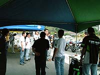 | 試乗会が始まる前のスタッフ がミーティングしていました。 |