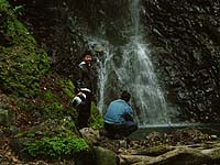 | あめるんと滝 | 滝壺で遊ぶあめるんと ズッキー | ||