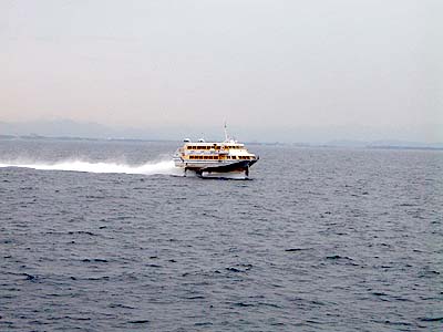 | あっ!と言うまにこんな状態です。 難民船状態でタバコも吸えないので 私はずっと甲板にいました。 2時間20分の船旅だから我慢できますが 3時間以上だったら特等とって行くでしょうね。 (いくらか知りませんけどね(笑)) | |