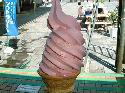 | 鳥海山を下りて道の駅で「苺ソフト」を頂きました。 200円はリーズナブルですね。 ここにはモンキーに乗って藤枝市からやってきた チャレンジャー君がいました。 32時間走り通しらしい。 |