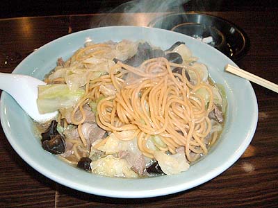 | もちろんたべたのは「ローメン」です。 つゆだく極太焼きソバって感じでした。 旨いか、不味いかは食べに行ってください(笑) | |