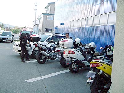 | 食べ終わって12:30にRockzさんに連絡を取ってみたら まだ大桑にいるらしい・・・・ まだ1時間以上かかるね。 そんならどうせ権兵衛峠通るから迎えに行こう! っと言うことで権兵衛峠に迎えに 行きました。 10分位すると遠くから爆音をとどろかせながら 2台のTMAXと1台のバンディットが到着しました。 ↑ 3.41M お久しぶりです。 関西出張以来です。 あの時は有難うございました。 |