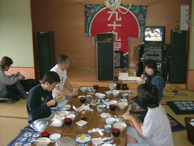 長生にある「太陽の里」でお風呂に入ってから 「ゆたか荘」には12:30頃到着して 皆さんの到着を待ちます。 もちろん先に一杯やって待ってました。 |