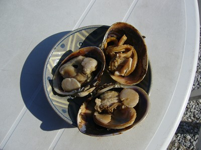| 大アサリです。 正式名称は「ウチムラサキ貝」 だそうです。 アサリに似ているから大アサリとして売っているみたい。 |