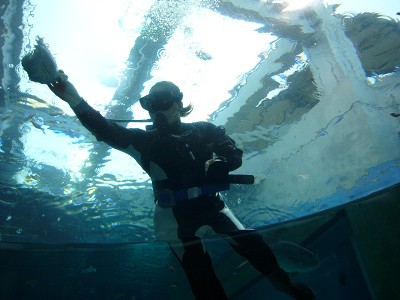 水槽の中を動画で見たい方はこちら(32M) ちょうどお昼になったのでココで昼食です。 |