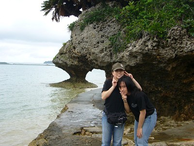 美ら海水族館手前のビーチで宇宙人が 貝拾いをしています。 |