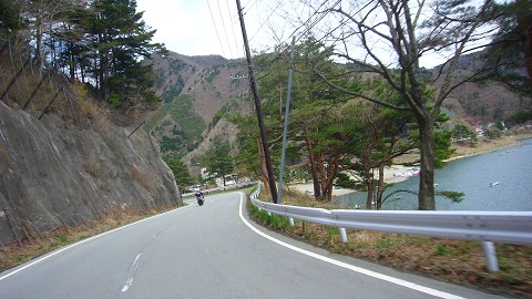 道の駅「どうし」の後は黄色い線の 道志道を走ります。 ここが結構辛いんです。 |