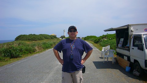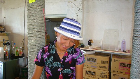| 池間島の売店でまたとうきびジュースを飲む ノルディーさん |
