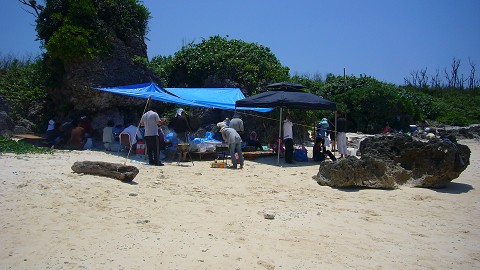 | 池間島の外周を走っていると車がいっぱい止まっていました。 なんだろうと海岸に出てみると・・・・・ |