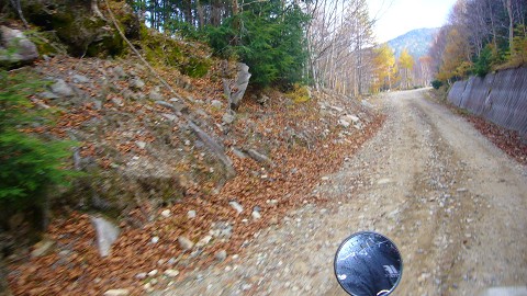 | トンネルを出ると綺麗なダートで 工事中でした。 これも動画(165M)で撮ってあります。 |