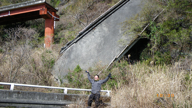 そこらじゅうに崩落箇所がある この道は絶対復旧はしないだろう 新道があるからね |
