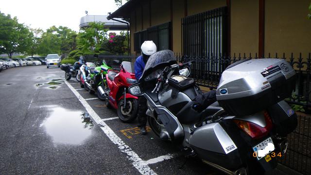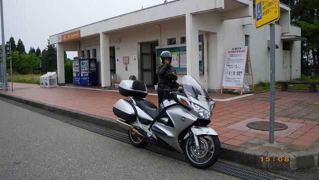 妙高SAで高速情報を見たら この先は雨らしいので二人で 合羽着用! これが大正解で走り出して直ぐに 雨が降ってきた! |