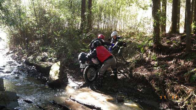 江戸道を終わって一旦デポ地に もどりnoriさんの給油を済ませて いよいよ魔境に入ります。 本当はスーパーVと呼ばれている 林道らしいです。 |