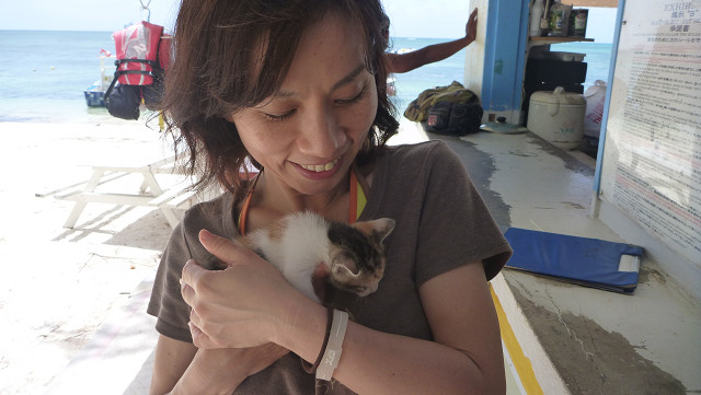 ホテルに戻り海岸にある マリンスポーツのお店にきたら こんな可愛いネコ子がいた |