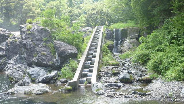 あまりにも綺麗な直線から 流れる白糸の滝は 人工的にも見える |